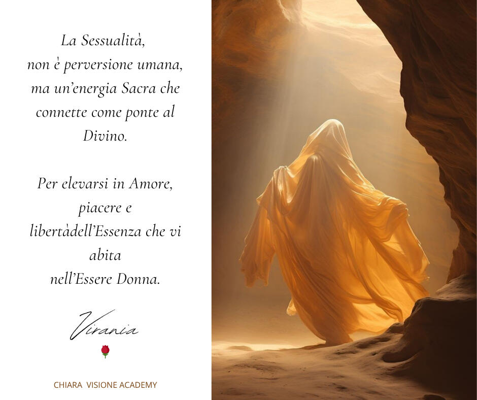 L’Amore comincia dall’incontro con sé stessi: solo innamorandosi di Sé si può amare, ed accogliere una relazione intima e profonda alla scoperta della Libertà, del piacere Sublime.Nell’Unione che crea il ponte verso il Divino, nella comunione delle anime che danzano armoniosamente oltre i corpi.